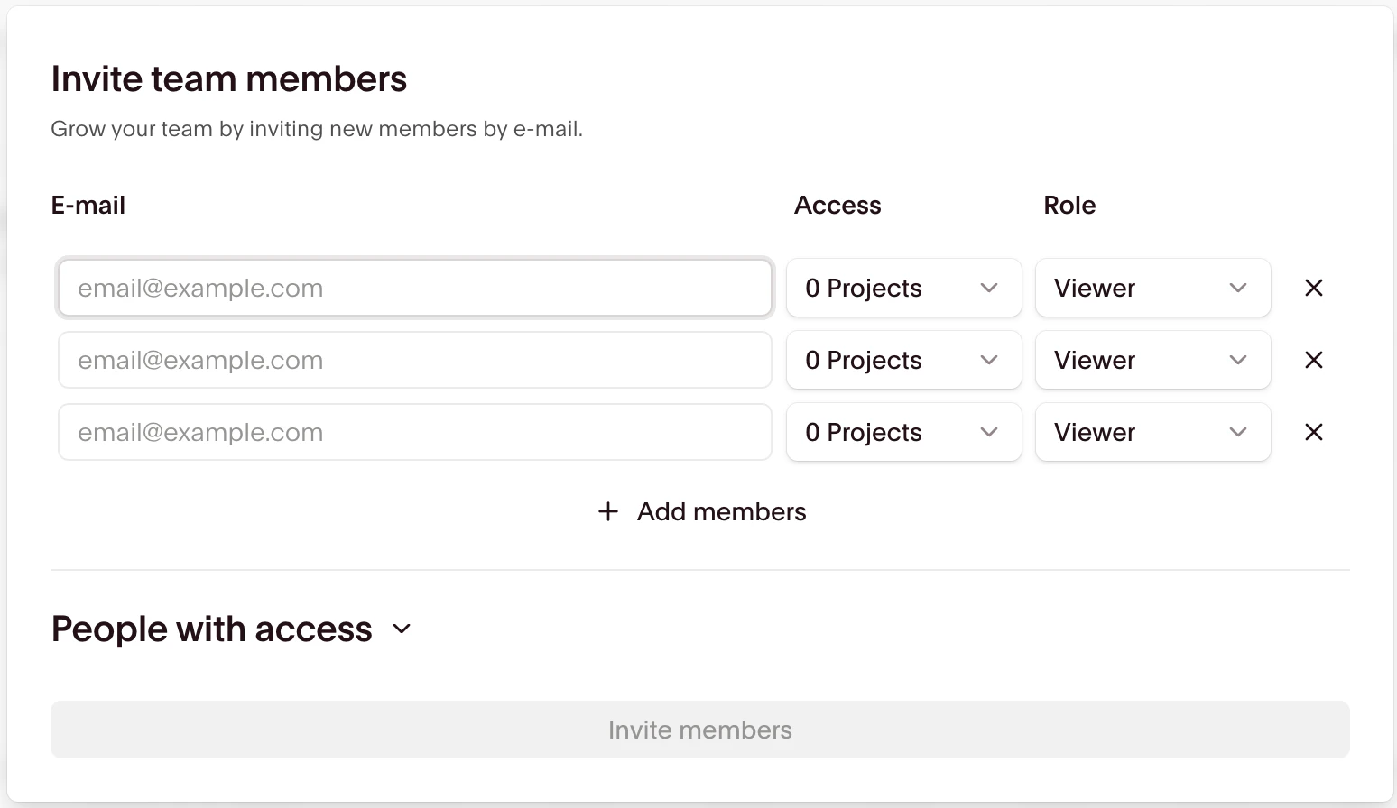 When you invite a new user to your organization, you can select which projects the user should have access to in addition to their role: